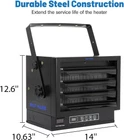 NEGOZIO NUOVI ARRIVI AGGIUNGI A PREFERITI VEDI FEEDBACK CONTATTI 8500W Electric Garage Heater, 240V Digital Fan-Forced Ceiling Mount Heater with Remote, Hardwired Shop Garage Heater with Thermostat, Overheat Protection, Timer, Ideal for Workshop Description 【Dual Heating Levels & Adjustable Louvers】This 8,500-watt fan-forced wall heater offers two heating levels of (5,600W/19,112BTU and 8,500W/28,971 BTUs), effectively heating up to 1,500 sq. ft. It has adjustable louvers and variable mounting angles for horizontal and vertical air flow 【Thermostat & Overheat Protection】Built-in adjustable remote-controlled thermostat allows you to set your desired temperature between 50F - 95°F, and automatically adjusts the working mode or turns off based on the ambient temperature. it will shut the garage heater off if the temperature gets too hot. You can also set an auto-off timer (1-8 hours) to save on energy bills 【240V Hardwired Hookup】BILT HARD recommends you hire a professional electrician to install it. The garage heater must be grounded and hardwired to a properly sized current protection circuit breaker by the (US) National Electric Code and local code 【Hassle-Free Operation】 This 8500W heater is designed for easy operations with a digital display screen and full functional remote control. This makes it a great heating solution as a ceiling mount heater for your garage , warehouse, workshop etc. 【Sturdy Rugged Construction】 Our hardwired shop garage heater comes fully equipped with an upgraded commercial grade heating element and premium motor to extend the overall performance and life of your heater, and ETL certified to ensure your safe use 【Warranty】- BILT HARD offers a 1-year warranty on this electric garage heater. We strive for quality and provide direct customer service for any quality issues that may arise during the warranty period 【Note】This heater does not come with a power cord! Volts / Amps: 208-240VAC /35.4 Amps Product Description BILT HARD is a brand in the home improvement category. With dedicated Engineering and Quality teams to ensure our products meet strict quality standards such as UL, ETL, SAA, CE, CSA and NOM, BILT HARD heaters provide safe performance with value and innovation. 8,500W ELECTRIC HEATER FOR GARAGE Enjoy warm & comfortable indoor activities ! Fan-forced design provides wide heating area. Heating coverage highly up to 1500 sq.ft Thermostat maintains the temperature steadily Overheat protection ensures the heater's saftey Conveniently controls with the panel and remote control Volts / Amps: 208-240VAC / 35.4 Amps Fan-forced Airflow Design Distributes the warmth throughout the space based on convective heat transfer and maximizes the heating performance. Its heating coverage highly up to 1,500 square feet, which provides a wide heating area. Safe Overheat Protection When the temperature of your garage heater is higher than actual temperature, the overheat protection will be activated and turn the heater off automatically, making sure safe and long-term usage. Adjustable Louvers &Angle The louvers of this ceiling mount heater can be adjusted up and down, which helps you direct the airflow precisely to where you need most Convenient Remote Control This garage heater can be controlled by remote, which makes it easier to adjust the temperature you want. 8H Timer Function The timer function allows you to set the timer (1~8 hours) to shut your heater off and save more on energy bills. Digital display The digital display panel can display the temperature and the currently set function . Input voltage displayl help you see the current voltage.Extra display of real time voltage reading ensure correct power connecting,2 40V,not 120V. WHO WE ARE We offer the best prices around on high quality products. Our E-store includes media such as books, movies, music and games while offering electronics, toys, sportswear, apparel, tools, general household items, garden items and more. SHIPMENT We always work hard to make sure your package arrives as soon as possible. Please understand that some factors such as weather conditions, high postal traffic and the performance of shipping companies are beyond our control. We offer FREE SHIPPING RETURNS POLICY We offer a 30 day return policy on items you are not completely satisfied with. You have the option of a full refund or an item exchange. CUSTOMER SATISFACTION We do our best to make sure every customer is completely satisfied. If there is a problem, please send us a message! We are happy to help you.