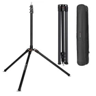 【Perfect Size on Fir a Plane Trip】Tripod-style base can be easily folded for easy carrying and storage (Travel carrying pouch within). Folding height: 21.7"/55cm. The maximum height of 86.6''/220cm and the min-height of 23.6''/63cm make it an excellent compact tripod to use around the trip. 【Sturdy and stable】The light stand is made of aluminum alloy, the diameter of the lamp stand is 27mm,making it strong for duty work. 【Quick release flip-locks】The design of the buckle is convenient for the telescopic pole to be more flexible and smoother than the traditional lamp holder. It can greatly enhance the operating experience. 【Flexible & Useful】Folded height:1.8FT; Maximum heigh:7.21FT;Min height:1.96FT; Max load capacity: 8.8 lbs; Net Weight: 1.95lbs. Lightweight design,easily transported from one location to another, adjustable for many lighting situations.; Perfect for macro shooting. 【Compatibility】1/4 inch screw tip on the stem, multiple different photography equipment can be mounted on this tripod stand,such as reflector, softbox, different lights, umbrella, background.