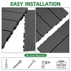 Specification Product Information Item Code: W2659P234053 Product Type: Single Box Product Product Name: 8.7 sq. ft DIY Wood-Plastic Composite Deck Tiles, Gray, Interlocking Outdoor Flooring Tiles Waterproof All Weather for Patio Balcony Backyard Patio Pavers (pack of 9) Place of Origin: China Main Color: Gray Main Material: Wood+Plastic Use Case: Garden & Outdoor Product Dimensions Assembled Length (in.): 11.80 Assembled Width (in.): 11.80 Assembled Height (in.): 8.50 Product Weight (lbs.): 23.20 Package Size Outer Package Images Length (in.): 13.50 Width (in.): 13.00 Height (in.): 8.50 Weight (lbs.): 24.60 Product Features Easy Installation: Our wood-plastic composite deck tiles have an interlocking base for easy do-it-yourself installation, and no tools are required - No glue, No nails. Design: Our WPC deck tiles have a simple, beautiful design that can be used indoors and outdoors; 4 slats per tile, each tile’s dimensions are 11.8" x 11.8". There is a small gap between each slat for better drainage. Durability: Premium wood-plastic composite material makes for superior water, slip, and UV resistance compared to natural wood; suitable for all weather conditions. Eco-friendly nature: Our WPC deck tiles are made from recyclable material, accredited by FSC and GRS, that reflects the idea that humans and nature live harmoniously; creates green and healthy leisure environment. Indoor & Outdoor Use: The interlocking deck tiles have a PE platform base allows for adequate drainage and moisture. Great for decks, patios, balconies, swimming pools, saunas, showers, sunrooms, mudrooms, bedrooms, and more.
