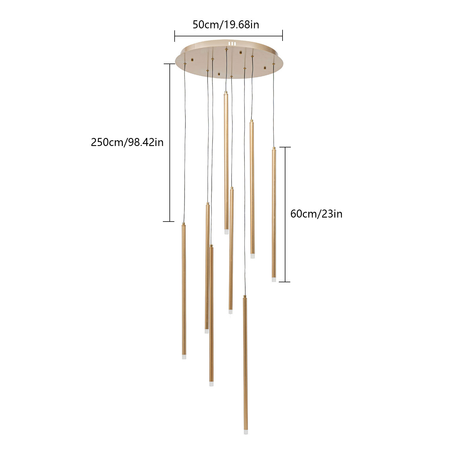 8-Head Chandelier Ceiling Mount Pendant Lamp Ceiling Lighting For Living Room Description This 8-Head Chandelier Serves As a True Centerpiece, Not Only Providing Essential Lighting but Also Exuding a Touch of Opulence and Charm to the Room. the Led Light Sources with a Neutral Light Color and Adjustable Heights That Enable You to Personalize Your Space to Reflect Your Style Lend a Subtle Touch of Elegance, Accentuating the Sophistication of the Interior Decor. Key Features Sturdy and Durable: the Product Is Made of High-quality Iron with Baked Paint, so It Is Sturdy and Durable and Has a Long Service Life. Adjustable Height: You Can Adjust the Height of the Cord Slings Through Buttons on the Chassis from 23.6 Inches to 10.17 Feet and Change the Shape of the Chandelier to Adapt to Different Room Heights and Personality Styles. Beautiful Home Decor: Featuring a Golden Round Chassis and 8 Golden Lamp Bodies at Different Heights, It Is Just like a Meteor Streaking Across the Sky, Creating a Romantic Ambiance. It Is an Art Piece Even When off. Humanized Design : It Adopts an 85-265v Wide Voltage and an Led Driver, Which Can Adapt to Different Power Supplies, Avoid Lamp Damage and Personal Safety Issues Caused by Voltage Mismatch, Help Maintain Stable Lighting Effects, and Effectively Reduce the Power Loss of Lighting Fixtures to Achieve Energy Conservation. Easy to Install: the Product Does Not Require Complicated Assembly Steps, Together with Complete Accessories, Allowing You to Install It Easily. Easy to Clean: Thanks to Its Smooth Surface and Simple Structure, You Can Easily Wipe Dirt and Dust Away from This Product with a Soft Cloth. Ideal Gift: It Is Beautiful in Appearance and Excellent in Quality, and Can Be Used As a Gift for Parents, Friends, and Lovers on Housewarmings, Birthdays, and Holidays. Protective Packaging: the Foam Can Better Protect Your Product During Transportation and Make It Delivered to You Completely to the Greatest Extent. Details Round Base: the Large Base( 19.68in ) Increases Stress Area, and Can Make the Ceiling Light Fixed Firm Without Falling Easily. 8 Led Chips: It Adopts 8 Led Light Sources, Which Have Lower Energy Consumption, Longer Service Life, and Better Energy Saving and Environmental Protection Performance Compared with Traditional Lamps. Application Its Applicable Area Is About 53.82 ft². It Is Ideal for Hallways, Living Rooms, Aisles, Stairs, Hotels, Cafes, Lofts, Pubs, Clubs, and Other Indoors. Specification Material: Iron Color: Golden Process: Baked Paint Style: Modern Shape: Round Assembly Required: Yes Mounting Type: Ceiling Mount Indoor/Outdoor Use: Indoor Light Colour: Neutral Light Source: 8* Leds(Included) Light Fixture Form: chandelier Direction of Light: Downlight Power Source: Corded Power: 12w Input: Ac85-265v, 50/60hz Output: Dc24-48v, 300ma±5% Tc: 85℃/185℉ Ta: 40℃/104℉ Efficiency: E Voltage: 110v Adjustable Height: 60cm-3.1m/23.6-10.17ft Applicable Area: 5㎡/53.82ft² Base Diameter: 50cm/19.68in Hanging Wire Length: 250cm/98.42in Lamp Body Length: 60cm/23inch Package Included 1* 8-Head Chandelier Other Accessories for Installation Notes Please Check the Product Size Before Ordering to Make Sure It Fits Your Room. Please Make Sure the Power Is Cut off Before Installation and When You Clean the Light. to Ensure Your Safety, We Recommend That Two People Install This Chandelier Together. the Surface of the Lamp Plate and the Electric Wire Should Avoid Scratching When Mounting, and Electric Insulation Gloves( Not Included) Must Be Worn When Installing. Please Install It by Someone with an Electrical License If Necessary. You Can Control This Chandelier with the Reserved Wall Switch. Please Do Not Touch the Light Source or Look Directly at the Lit Light Source When the Fixture Is Turned on, and Keep Flammable Materials Away from the Light Source. Please Use the Product Within the Applicable Voltage Range and Clean It Regularly. Please Cut off the Power Supply When You Clean the Light or Replace Light Sources. Please Allow the Slight Color Difference Caused by the Shooting Light and the 1-3 Cm Error Due to Manual Measurement, and Make Sure You Do Not Mind Before Ordering. Payment Delivery details Terms of sales About us Contact us Payment We accept ebay payment 。 Fees such as import duties, taxes are not included in the item price or shipping costs. These charges are the buyer's responsibility. Delivery details Shipping: 2-9 working days to: USA Terms of sales We maintain high standards of excellence and strive for hundred percent customer satisfaction. Feedback is very important to us. We hope that you contact us immediately before you give neutral or negative feedback, so that we can address your concerns. It is impossible to address issues if we do not know about them! About us Your satis faction is our ultimate goal. We work hard to earn your trust and future business. Our certified technicians have tested each item before shipping. The unit comes with 1 year limited warranty on all manufacturing defects. a) If you receive a defective item, you may return it or ask for a discount. Please contact us within 14 days after you receive the package. b) What you returned must be intact and in its original packaging as re? u. Customer is responsible for shipping costs of the returned item. c) We will cover the cost of shipping back t with the shipping rate indicated in the registration page. We will send you a new unit or refund the full payment you paid. Thank you. Contact us Business Hour Business Hour: Monday To Friday: 8:30 AM to 5:00 PM (Beijing China time) Due to time zones, our reply to your questions may not be immediately. But within above working time, we will reply your email within 24 hours. If it's non-workdays, please kindly be patient and wait till Monday. Please contact us with ebay message. Please feel free to contact us if you have any questions. Monday To Friday: 8:30 AM to 5:00 PM (Beijing China time) Due to tim