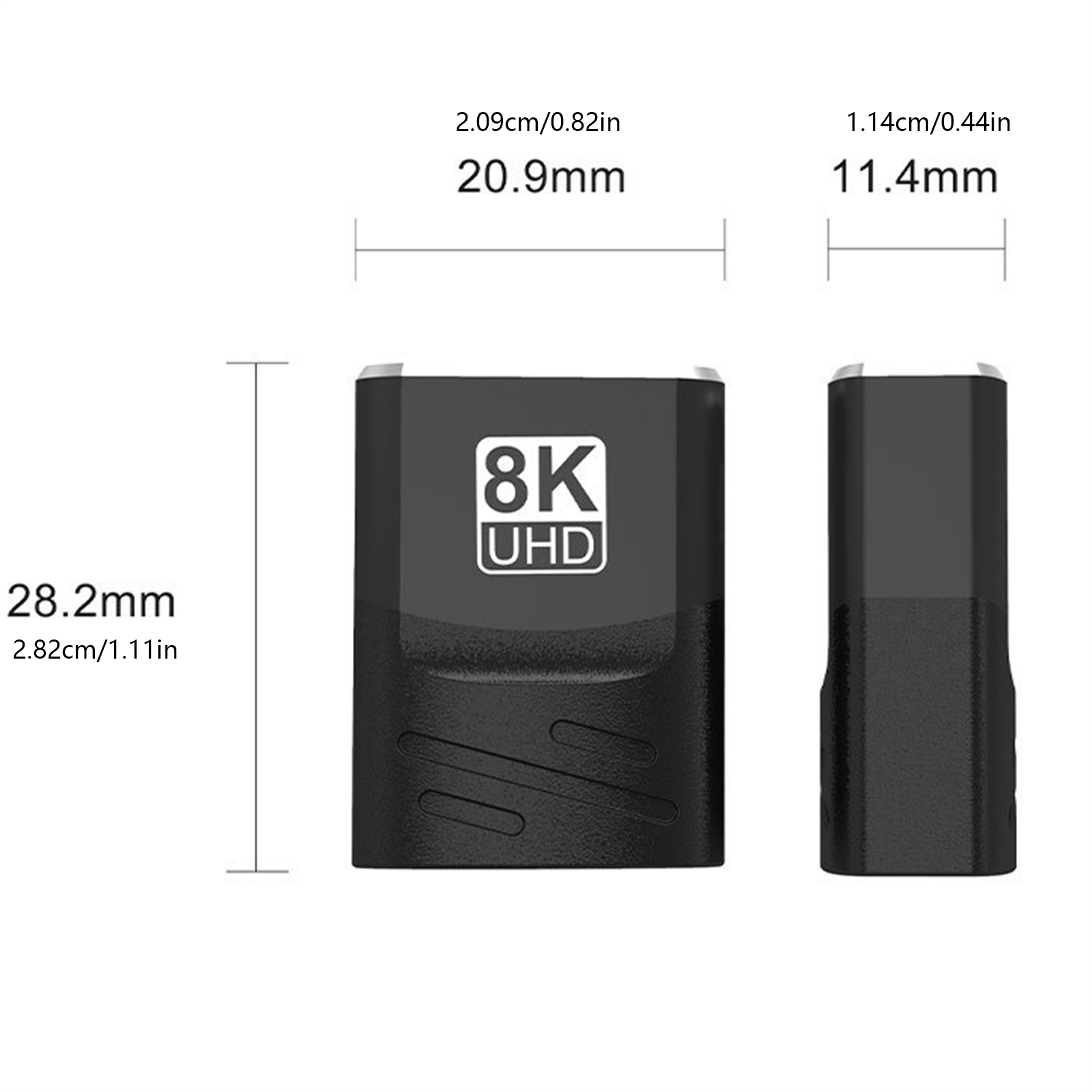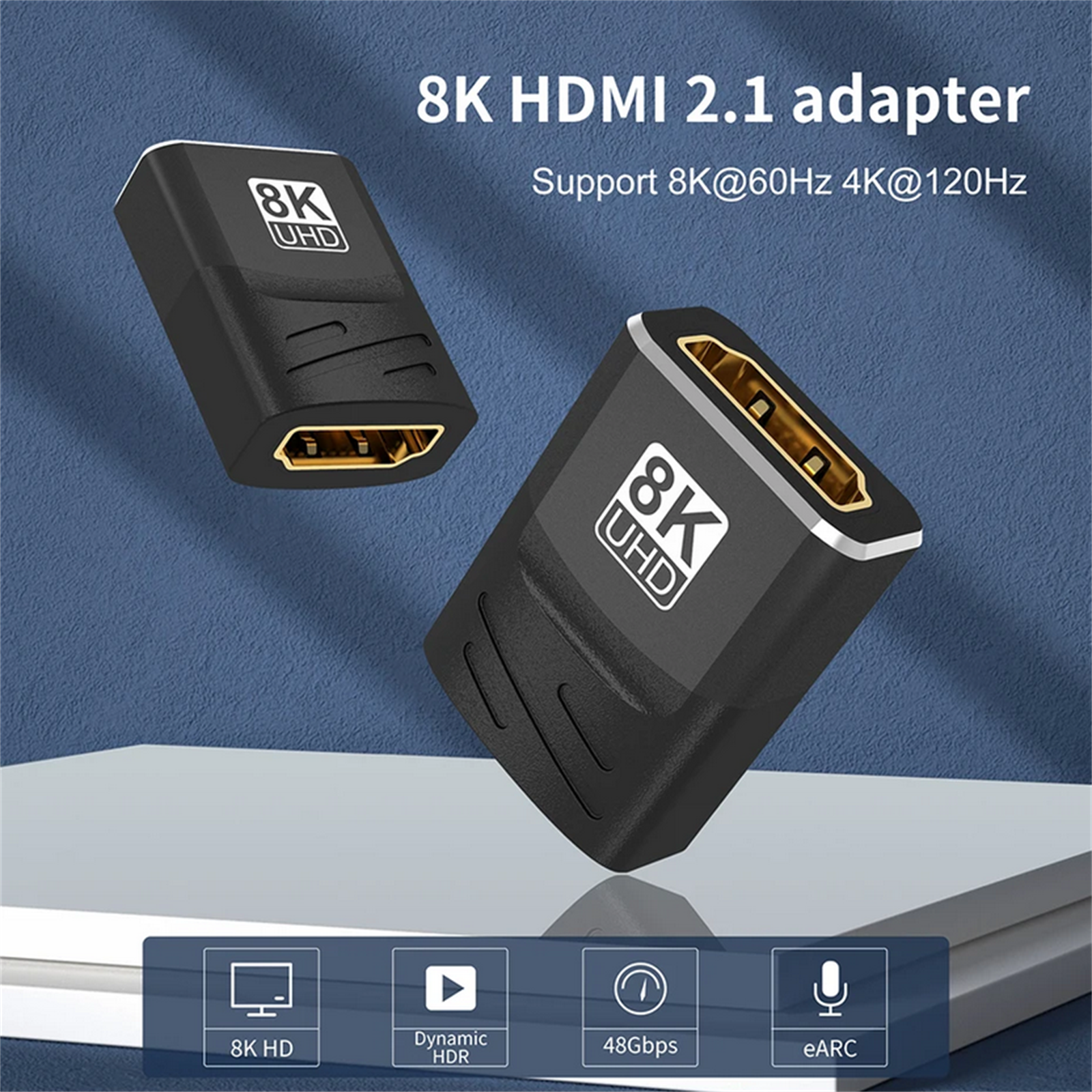 Product Description HDMI-Compatible Adapter 8K 60Hz 4K 120Hz Female To Female Connector HDMI-Compatible 2.1 Cable Extension Converter HDMI-Compatible Adapter Coupler Specification: Material: Aluminum alloy/PVC Interface process: Gold plating Resolution: 7680x4320P Bandwidth: 48Gbps Refresh rate: 8K@60Hz /4K120Hz Version: 2.1 (Backward compatibility 2.0) Feature: 1. UHD 2.1 8K Resolution: Supports 7680x4320, 8K/60Hz and compatible with 4K@120Hz, 48Gbps. Offers more dynamic range and image detail, providing a deeper and more realistic viewing experience. Note: The host and display devices must also be version 2.1 to meet requirements. 2. Stunning 3D Visual Effects: Create a high-definition home theater with 3D imaging technology. Smooth and natural color transitions provide vivid and lifelike images that transport you into the scene. 3. Compatibility with Various Devices: Suitable for monitors/ TVs/ projectors/ desktop computers/ laptops/ game consoles, etc. Please check the interface type before purchasing and HDMI-compatible cables are required for use. Product List: 1x HDMI-Compatible Adapter Shipping Returns Contact Us Payment 1. Items sent from US warehouse. 2. Receiving time = Processing time + Shipping time. 3. Pro cessing Time: Around 1-2 business Days. 4. Shipping Time: 3-5 business day. it may have a little delay during some holiday (such as Christmas), any problem, please feel free to contact. 1. 30 days warranty from the purchased date. Please contact us via email before returning the defective item. 2. Our warranty does not extended to any product that are physically damaged or that are not under normal operating conditions as result of misuse or improper installation on the buyer/user's part. 3. Return items should include the original packaging and all accessories. buyers MUST contact us for the returning address. 4. In all cases, buyers pay shipping fees at their own cost to return products for exchange or refund. We will be responsible for the postage of replacements. Refund will be made upon receipt of the returned item. If you have any question, please e-mail us immediately, we will reply you as quickly as possible. We care about our valued customers, and will always try to help you. We accept all verified payment from eBay. Shipping 1. Items sent from US warehouse. 2. Receiving time = Processing time + Shipping time. 3. Pro cessing Time: Around 1-2 business Days. 4. Shipping Time: 3-5 business day. it may have a little delay during some holiday (such as Christmas), any problem, please feel free to contact. Returns 1. 30 days warranty from the purchased date. Please contact us via email before returning the defective item. 2. Our warranty does not extended to any product that are physically damaged or that are not under normal operating conditions as result of misuse or improper installation on the buyer/user's part. 3. Return items should include the original packaging and all accessories. buyers MUST contact us for the returning address. 4. In all cases, buyers pay shipping fees at their own cost to return products for exchange or refund. We will be responsible for the postage of replacements. Refund will be made upon receipt of the returned item. Contact Us If you have any question, please e-mail us immediately, we will reply you as quickly as possible. We care about our valued customers, and will always try to help you. Payment We accept all verified payment from eBay. You may also like 5/16" Line Fuel Filter Replace Part For Mercury For Quicksilver Marine Engine 12.33 USD Metal Bead Eyeglass Chain Glasses Strap Holder Lanyard Sunglasses Non-slip 8.93 USD 1.99 USD 1.8mm Thickness Quick Release Watch strap Band Spring Bar Repairing Tool 17.53 USD 1.99 USD Black Silicone Cover Pad With Strap For JBL Charge 5 Bluetooth Speaker 16.93 USD 3D-printed Material Fuel Tank Kit For Gundam MG 1/100 Sazabi ver ka Model Kit 23.63 USD 1.99 USD New MB-D18 Vertical Multi-Power Battery Grip Replacement For Nikon D850 Camera 55.93 USD 1.99 USD powered by