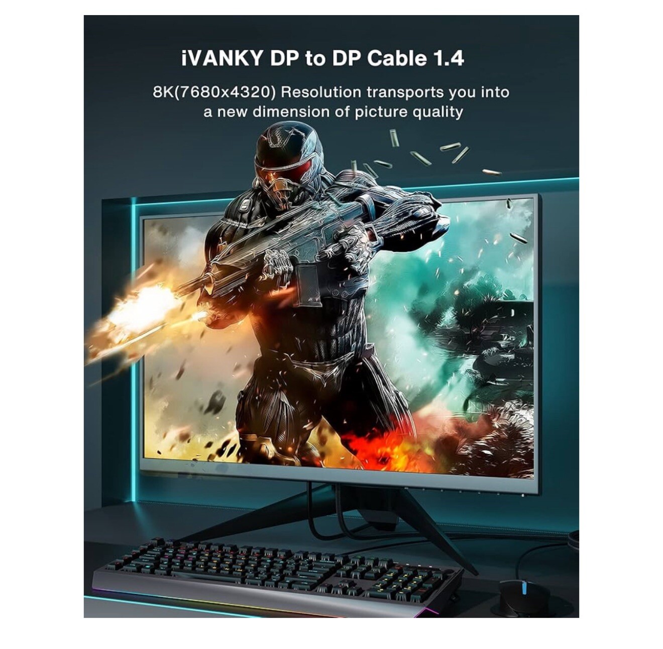 The IVANKY 8K DisplayPort Cable 1.4 is a high-quality, long DP cable that supports 8K resolution at 60Hz, 4K resolution at 144Hz, and 1080P resolution at 240Hz. It features a sleek black design and a length of 20 feet, making it ideal for connecting various devices for a seamless viewing experience. With a 30-day money-back guarantee and free fast shipping, this cable offers convenience and peace of mind for all your video needs. Box was opened but cable is brand new