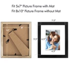 8x10 Black Wood Picture Frame- White Mat for one 5x7 Photos Acrylic Glass included 8x10 Wooden Picture Frame Includes One Black 8x10 Inch Frame, One Single White Mat For 5x7 Pictures (Mat Opening Size: 4.5x6.5") Fit For: 8x10-Inch Pictures/Photos (Without Mat) or 5x7-Inch Pictures/Photos (with Mat) Features: 1'' Wide and 0.75'' Thick Molding, Bevel Cut Mat with White Core and 4-Ply Thick (About 1.4 Mm or 1/16 Inch), 2 Hooks For Vertical and Horizontal Hanging Options, Easel Stand For Table-Top Display Suitable For Any Decor: Decorate Any Room with This Beautiful Sleek Black Frame. It can Stand On Any Desk/Table Top or Along Your Walls. Display All of Your Favorite Artworks with This Classy Frame Important Note: Before Putting Your Photo In The Frame, Remove The Protective Film From Front and Back of The Acrylic Sheet. Photo Frame Assemble Instructions Are Included