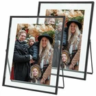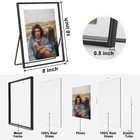 PACK OF 2 PIECE: 8x10 floating frame, suitable for multiple photo sizes 8x10in 6x8in 5x7in 4x6in, frame outer size 8x10 inch. ONLY VERTICAL TO USE: It is not suitable for hanging on the wall. This black picture frame is designed for countertops. Suitable for desktop, shelf or any flat surface, just pull out the stand and place it on any flat surface you want to display. QUALITY: The floating frame is made of metal and two pieces of real glass. Metal frame in black tone finish. It features a modern style with a slim profile and a floating photo effect. PERFECT GIFT: This beautiful floating picture frame can be used as a gift for family, friends and colleagues. Suitable for a variety of decoration styles and use in a variety of scenarios - weddings, birthday parties, house warming, etc. REPLACING THE PHOTO: You need to use a small screwdriver to remove the rubber strip, remove the two pieces of glass, then place the photos you want to display, and finally tuck the rubber strip back in.