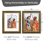8x10 Picture Frame for 5x7 Photo with mat or 8x10 picture Without Mat, Real Glass for Wall Mounting and Table Top Antique Black Gold Picture Frame. Horizontal and Vertical Formats For Wall With Mat Fit For: 5x7 Picture Without Mat Fit For: 8x10 Picture Easy For Mounting.Could Be Hung Horizontally or Vertically Come with Real Glass Ideal Gift For Wedding,Christmas, Mother's Day etc.