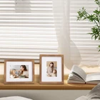 Made by solid wood which is are more durable and stand up better to changes in temperature and humidity than composite wood. The frame includes build-in table top versatile kickstand and triangle hangers for vertical or horizontal display. Attaching white nails for wall mounting and hanging frames. Frame description: 8" x 10" frame size, can display 5"x7" / 4"x6" picture with mat or 8"x10" picture without mat. Light brown solid wood frame. Hangs both horizontal and vertical. Nothing adds warmth to a home more than a display of personal photos and mementos. Choose the solid wood for long-lasting way to display your favorite family, vacation or memorable events. DIMENSION: Overall dimension is 9x11 inch, back opening size is 8x10 inch, opening size is 7.5x9.5 inch, mat size is 4x6 and 5x7 inch. Perfectly dress up rooms in your home or desks, walls in your office. Great gift for festival, Father's Day, Mother's day, birthday, wedding and holiday to friends and family. SOLID WOOD: Made with premium quality wood. Covered with high-definition transparent plexiglass to protect your photos from dust contamination and damage. The wooden frame will be a long-lasting way to showcase your favorite memories. Display your photographs, travel souvenirs, concert programs, awards, certificates, artwork with our wood frame. WALL MOUNT: Includes eight nails to easily hang artwork or photographs in either portrait or landscape orientation. Designe a family art wall, personal memory wall to increase the family atmosphere. ALSO FOR TABLE TOP: Versatile kickstand easel lets you display either horizontally or vertically. Display on desktop and table top, for your home and office. EASY TO INSTALL. Well constructed and build-in mechanism is convenient and safer to use. The tiny locker on the back of the wooden frame is easy to open and load your pictures quickly.