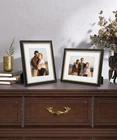 【Black Gold Frame】Black wood grain decorated with distressed gold line beaded trim make it elegant but also classic look. It goes perfectly with all of other decor, such as vintage, antique and modern. 【8x10 or 5x7 Photo】8x10 Picture Frame without mat or 5x7 with mat for you choice. It can store family photos, paintings, graduation certification, artworks and other favorite pictures. 【Safely Use】High-definition acrylic front layer is lighter and safer than glass but has a glass-like appearance. Each layer has a double-sided protective film, please tear it off before installing the picture. 【Different Display Way】Antique frame can be placed on the table or hung on the wall with sturdy backboard and two hooks. Display photos vertically or horizontally. Sturdy but light PS Material design is easy to move. 【Gift Idea】Exquisite golden and dark brown edge highlights the texture and three-dimensional surface highlights the layered feeling. Perfect suit to be gifted to family members, friends and all loved ones to express blessings.