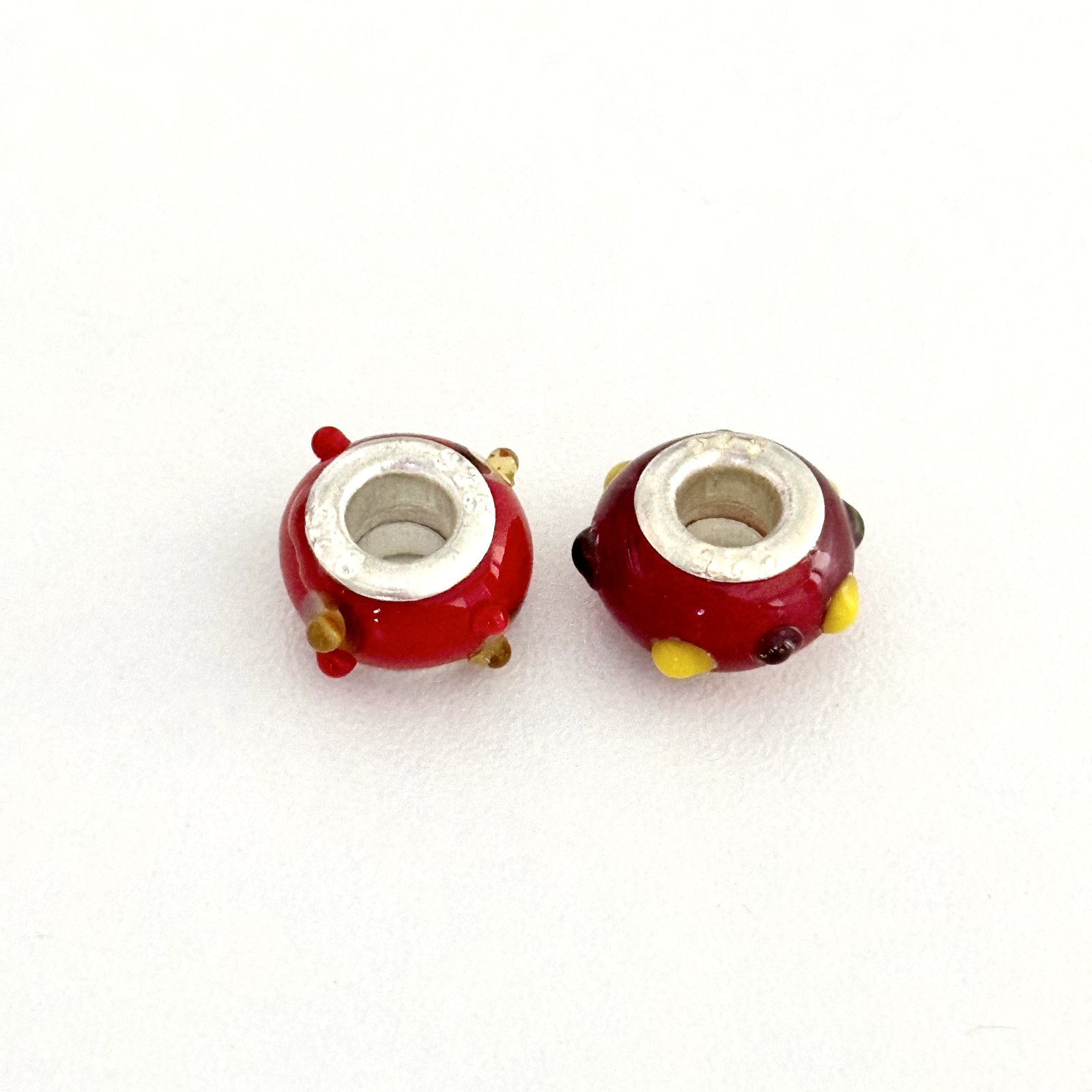 925 Sterling Silver Cherry Red Yellow Spots Murano Glass European Charm Lot Of 2 Signed: 925 Very good condition. Compatible with Pandora bracelets, Chamila, Trollbeads, etc. - Fast shipping, I ship the same or next business day! I also combine shipping. - Thank you so much for shopping with me and please check out my other jewelry listings, I post new pieces daily!