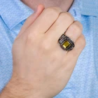 925 Silver Customized Rectangle Men's Birthstone High School College Class Ring