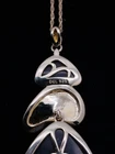 925 Sterling Silver 2" Gold Tone Grey Cat Eye Enamel Pendant Necklace 18" #54