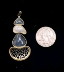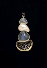 925 Sterling Silver Layered Gold Tone Over 2" Grey Cat Eye Enamel Pendant 18" Necklace #54 Ready to wear! Hand polished. Measuring Tools and Quarter are not included. Combined Shipping! 1st item $4.59, each additional item is $1. Max shipping cost $10. Combine shipping for up to 7 days! #0454