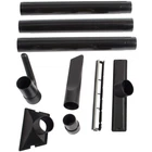 This complete vacuum kit includes a variety of common accessories to fit to industry standard 2.5” home vacuum hoses. Molded in PP to ensure dimensional stability, excellent wear characteristics, and resistance including oils and derivatives often found in home and commercial environments Included are three 2.5” X 19.5” plastic wands which stack to provide 59” of length sufficient to reach deep under work stations and up to collect dust and cobwebs on a 10 foot ceiling. Depending on the application , , or three wands can be used to optimize the result. Also includes a modular floor tool, a full size hard floor tool, gulper tool, crevice tool, and vacuum fitting. Designed to fit to industry standard 2.5” home vacuum hoses and plastic wands typical of major home vacuums equipped with 2.5” hose Molded in PP to ensure dimensional stability, excellent wear characteristics, and resistance including oils and derivatives often found in home and commercial environments Includes three 2.5” X 19.5” plastic wands which stack to provide 59” of length sufficient to reach deep under work stations and up to collect dust and cobwebs on a 10 foot ceiling The plastic handle permits use and control of the wands and related tools with hand. The 5” long handle accepts industry standard 2.5” plastic wands and has a reverse curve handle extending back of the wands in use that helps stabilize the wands when reaching high or low when vacuuming System will accept most major brand 2.25 home vacuum plastic wands which can be used to further extend reach and gain the benefit of the handle solution Modular floor tool is 12" wide and includes a squeegee attachment The gulper tool has a 7” wide leading edge tapering to 5” in the trailing edge to maximize the pick-up of bulky and heavier debris profiles Paddle crevice design tapers to improve access down the 11” length with a notched end to insure airflow is maintained even when the tool is flat to a surface