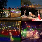 black string lights permanent led house lights black light string light edison bulb string lights black and edison bulb lighting string lights for outside color changing colored outdoor string lights outdoor led lights for patio color changing led string lights outdoor colored lights patio lights color changing 【8 Colors Solar String Lights with 6 Lighting Modes】These LED string lights have 8 single vivid colors (warm white, red, green, blue, white, cyan, purple, orange) & 6 dynamic modes(jump, fade, flash, and auto cycle) to meet all your demands. Changing the colors as you like; it is DIMMABLE, using the remote controllers to get the 4-level brightness. 【5000mAh Solar Panel with a USB Charging Port】With upgrade 5000mAh solar panel, our outdoor string lights can work for about10 hours with a full charge. It's also can automatically turn on or off at night or day. Besides, the panel is equipped with a USB charging port to able charge the solar panel when in bad weather. 【IP65 Waterproof and Shatterproof Patio Lights】These solar RGB string lights are made of commercial-grade strands, flexible stocks and durable plastic bulbs, with no fear of any hard weather situation. 【Easy to Install & Widely Application】You can clip the solar panel to fence or insert it into the ground. 180°adjustable allows the panel to get the maximum sun exposure. These solar patio string lights are perfect to decorate your backyard,garden. 【 Customer Service】 If there is any question about these solar string lights, please feel free to contact us via the Amazon message box, we will handle it for you as soon as possible.
