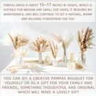 96PCS Natural Dried Pampas Grass Boho Home Decor Bouquet Phragmites Dried Flowers Bouquet for Wedding Floral Arrangements Home Decorations (96PCS) Product Details Size: 96PCS Brand: WILD AUTUMN MPN: Wa-b EAN: 9490408965321 UPC: Does not apply Color: Natural,white,beige Plant or Animal Product Type: Hierba de la Pampa Brand: WILD AUTUMN Specific Uses For Product: Home Décor Unit Count: 96 Count Manufacturer: WILD AUTUMN Product Dimensions: 4 x 4 x 17 inches Item Weight: 4.2 ounces Item model number: Wa-b Date First Available: October 24, 2021 BEAUTIFUL HOME DECOR - Be ready for our attention-grabbing pampas grass to stand out in any room!Whether it be homes, offices, or weddings, our pampas grass fits effortlessly with boho, farmhouse, and modern style decorations! With proper care -our Pampas Grass Bouquet can last up to three years, making it a sustainable and eco-friendly decorating option.keep it dry and enjoy the beauty of this low-maintenance floral arrangement,our pampas grass is an easy and low-maintenance way to add natural beauty to your home or wedding floral arrangements. EASY AND LOW-MAINTENANCE - Easy to maintain simply lightly shake,Leave the pampas grass in the sun for three to six hours to allow the sun's energy to fluff it up. and Spray some hairspray to preserve pampas fluffy. BRING NATURAL IN TO YOUR HOME - Our pampas grass is ethically sourced and all-natural,making it the perfect choice for environmentally conscious-consumers who want to decorate their homes with sustainable products. ENJOY FLOWER ARRANGEMENTS - Trim it to the length you like and insert it into the vase . It will be a surprise to decorate your life and a perfect gift for your friends. our pampas grass bouquet is the perfect choice.