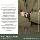 A-11 Spec 2 Vintage Military Field Watch, 32mm or 42mm Stainless Steel Case with Leather/Canvas/Nylon Strap, Men's Tactical Wrist Watch Suitable for Work and Outdoor Use with 2-Year Warranty - Buy Now with Fast Shipping! A-11 Spec 2 Vintage Military Field Watch, 32mm or 42mm Stainless Steel Case with Leather/Canvas/Nylon Strap, Men's Tactical Wrist Watch Suitable for Work and Outdoor Use with 2-Year Warranty Product Details Package Dimensions : 11.97 x 2.68 x 1.65 inches; 8.8 ounces Item model number : PAQ-40-MB-GRK1 / P-40-MB-GRK1 Department : mens Date First Available : February 6, 2022 Manufacturer : PRAESIDUS Country of Origin : USA Brand, Seller, or Collection Name: PRAESIDUS Clasp: Buckle Model number: PAQ-40-MB-GRK1 / P-40-MB-GRK1 Key Features Product Description