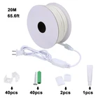 Specification: 1. LED Type: COB LED Strip Light 2. Color: Warm white (3000K) 3. CRI> 90 4. LED Quantity: 288 LEDs/M 5. Input Voltage: AC 100-120V 6. Waterproof: IP65 7. Power: 10W/M; 3.2W/FT (Total 200W/65.6FT) 8. Length: 20M/65.6FT 9. Lumen: 800LM/M 10. Width of strip: 10MM 11. Working temperature: -20℃ to 40℃ Package includes: >> 1x 65.6ft/20M Warm White LED COB Strip >> 1x US Power supply cable >> 1x 20Pcs Clips for fixing light strips 【COB LED Strip Light Outdoor Waterproof】The COB LED light strip is IP65 outdoor waterproof, suitable for indoor and outdoor use, such as bedroom, garden, commercial, for safety reasons, do not leave the COB LED strip light in water for a long time. 【AC 110V 120V COB LED Strip Light】65.6FT 110V-120V high voltage COB LED strip light have no difference in brightness between the beginning and end of the strip, more even light, brilliant. Equipped with plug and rectifier, no special power adapter is required! 【Super Bright COB LED Strip】High Power 200W/20M, High Brightness 800LM/M, High Density 288LEDs/M, High Color Rendering Index CRI>90. 180 Degree Beam Angle Design, 50% wider illumination range, even illumination, no dark spots. Strip light is not self-adhesive. 【Flexible and Cuttable】Flexible COB LED rope light can be used on certain curved and irregular surfaces. It is not limited to use on vertical walls. The strip is cut every 50cm/19.5in, after cutting, please insulate and waterproof to avoid electric shock. After cutting, please Use the plug and connector for high voltage light strips (sold at stores). 【Safe to Use】 The LED rope light has passed CE Rosh certification; and the LED tape light comes with silicone protection to avoid the risk of electric shock; Please do not install or repair with electricity,do not damage the outer silicone protection layer; Do not light the LED strip when it is rolled up to avoid overheating and burning the light strip or cause fire.