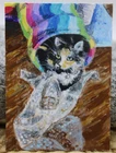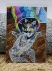 This is a cute original artwork done by me, Rockn Palette/ Amy Moreno. This artwork is of Miss Bella, resting in her rainbow tube, while playing with bubble wrap. This artwork is made with (mixed media) colored pencil and acrylic paint on mixed media paper. It is signed on the back with COA attached. Title: Bella plays with bubble wrap. ❤️ . Size: 3.5" by 2.5" Date: 6/15/25 This will ship in a regular envelope with stamps. I will make sure artwork in protected in envelope.