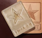 If you are purchasing more than one item from our store, add the items to your cart then request a combined shipping invoice from your cart. THESE STAMPS REQUIRE A CLICKER PRESS or a FLATBED PRESS ACRYLIC - NO HANDLE THIS IS NOT A METAL STAMP AND IS NOT TO BE HAMMERED HANDMADE This is a Highly Detailed Laser Engraved Acrylic " U.S. ARMY STAR " Embossing Stamp for stamping on veg tanned leather. Made of Clear 1/2" Extruded Acrylic. The stamped impression is approximately: LARGE 3" tall x 2 3/8" MEDIUM 2 1/4" tall x 1 3/4" SMALL 1 1/2" tall x 1 1/8" an overall thickness of 1/2" CAUTION: These stamps are NOT made to be hammered. These stamps come out perfect when using a Flat Bed Press or Clicker Press . Hard surface plates MUST cover the entire area of the stamp both top and bottom as this will avoid any damage to the stamp and leave a very nice and even design on the leather. For best result you need to wet the leather. WE DO NOT WARRANT ANY DAMAGE FROM BUYER MISUSE OF THIS ITEM DUE TO IMPROPER TECHNIQUE. CAUTION: These stamps are NOT made to be hammered. CUSTOM ORDERS ARE WELCOMED If you need a custom design, shape and or style, we can make it. Just send your artwork file and overall dimensions of the leather shape or design you need, and we can make it. If you have an idea but not sure of what exactly you want, we can help coordinate you ideas to make it work. Custom orders are ready for shipping in 24 or 72 hours. ___________________________ CRAFTY COYOTE LEATHER WORKS * PAYMENT * All Payments expected within 2 days of winning AUCTION or BUY IT NOW purchases. All payments accepted through PayPall ONLY * SHIPPING DETAIL * SHIPPING IS MONDAY THROUGH FRIDAY If an item closes Friday after 5:00p.m. it may not ship til the following business day (Monday) COMBINED SHIPPING AVAILABLE We ship only to confirmed Pay pal address. NO APO/FPO addresses. UNITED STATES SHIPPING ONLY! WE DO NOT SHIP INTERNATIONALLY * Return Policy * 30 day return policy Money Back Gaurantee Buyer pays Return Shipping. If you have any questions, please feel free to ask, it helps me because there might be something I forgot to mention, but please do so before you bid * Feedback * All we want are happy buyers. In the unlikely event there's a problem when you receive this item, contact us before you leave feedback and we'll do what we can to resolve the problem. We'll take back any item that is not exactly as we represented it but only if you contact us before you leave feedback. an overall thickness of 3/8" CAUTION: These stamps are NOT made to be hammered. These stamps come out perfect when using a Flat Bed Press or Clicker Press . Hard surface plates MUST cover the entire area of the stamp both top and bottom as this will avoid any damage to the stamp and leave a very nice and even design on the leather. For best result you need to wet the leather. WE DO NOT WARRANT ANY DAMAGE FROM BUYER MISUSE OF THIS ITEM DUE TO IMPROPER TECHNIQUE. CAUTION: These stamps are NOT made to be hammered. CUSTOM ORDERS ARE WELCOMED If you need a custom design, shape and or style, we can make it. Just send your artwork file and overall dimensions of the leather shape or design you need, and we can make it. If you have an idea but not sure of what exactly you want, we can help coordinate you ideas to make it work. Custom orders are ready for shipping in 24 or 72 hours. ___________________________ CRAFTY COYOTE LEATHER WORKS * PAYMENT * All Payments expected within 2 days of winning AUCTION or BUY IT NOW purchases. All payments accepted through PayPall ONLY * SHIPPING DETAIL * SHIPPING IS MONDAY THROUGH FRIDAY If an item closes Friday after 5:00p.m. it may not ship til the following business day (Monday) COMBINED SHIPPING AVAILABLE We ship only to confirmed Pay pal address. NO APO/FPO addresses. UNITED STATES SHIPPING ONLY! WE DO NOT SHIP INTERNATIONALLY * Return Policy * 30 day return policy Money Back Gaurantee Buyer pays Return Shipping. If you have any questions, please feel free to ask, it helps me because there might be something I forgot to mention, but please do so before you bid * Feedback * All we want are happy buyers. In the unlikely event there's a problem when you receive this item, contact us before you leave feedback and we'll do what we can to resolve the problem. We'll take back any item that is not exactly as we represented it but only if you contact us before you leave feedback.