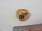 Occasion: Wedding, Birthday, Christmas, Anniversary, Christening, Valentine's Day, Graduation, Father's Day, Engagement, Confirmation/Communion Type: Ring Ring Size: 9 UPC: Does not apply Seller Warranty: No Brand: Unsigned Designer gtin13: Does not apply Shape: Band Antique: No Metal: Gold Plated Seller Notes: “GOOD CONDITION. MINIMAL WEAR AS SHOWN” Theme: Sports, Baseball, World Series Championship Vintage: No Color: Gold, Red Signed: No
