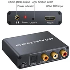 Features: Support SPDIF output. Supports coaxial output. Support RCA stereo output. Support 3.5mm stereo headphone port output. 3.5mm stereo headphone port equipped with high-performance audio amplifier. Support switch noise reduction funtion. Supports no signal automatic mute function. Support transmission 192KHz audio sampling rate. Optical Fiber Coaxial Interface Supports 5.1 Channel Transmission. Specifications: Condition: Brand New Shell material: aluminum alloy Power supply interface: Micro USB Maximum working current: 65mA Power adapter specifications: AC 100V-240V, DC 5V/1A Working environment temperature: -10~55℃ Storage temperature: -20~60℃ Working humidity: 10-90%RH (no condensation) Storage humidity: 5 - 95%RH (no condensation) Product size: 80*58*21mm/3.14*2.28*0.82'' Package includes: 1 x HDMI-compatible ARC Audio Adapter 1 x Micro USB Cable 1 x User Manual
