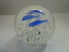 ART GLASS PAPER WEIGHT CASED DOLPHINS & AIR BUBBLES 7.5 CM HIGH GOOD CONDITION SEE PHOTOS FOR BEST GUIDE