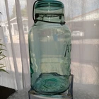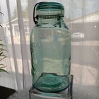 This aqua-colored 58oz jar with a wire bail and glass lid is a must-have for any collector of modern bottles and insulators. Made in the United States, this jar is perfect for storing fruits or other items, and its unique design makes it a great addition to any collection. The jar is categorized under Jars, Modern Bottles, Bottles, and Collectibles, making it easy to find and purchase. Get your hands on this rare item today!