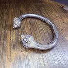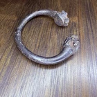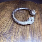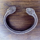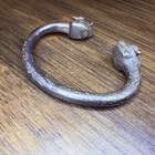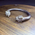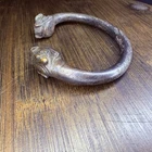 The bangle likely originated near East / Central Asia, Turkey or Persia during the achaemenid empire from 6th to 2nd century BCE. This is an ancient cast bronze bracelet terminating in stylized zoomorphic heads, possibly representing lions, boars, or mythical beasts. The bracelet display a smooth curvature with terminal detailing that echoes protective or symbolic animal motifs seen across ancient eastern and mediterranean ornamentation. Likely worn in antiquity as talismans or symbols of identity and wealth. These bangles would usually be buried with the deceased. Condition: Pitting and abrasions, but intact. Softening to details on the smallest. Dark patina and oxidation. Size: 2.9" Diameter x 0.4" W (7.4 cm x 1 cm); gap opening: 0.8" W (2 cm) Provenance: ex-Phoenicia Holyland Antiquities, New York, New York, USA, acquired before 2010 . This item is legal to buy/sell under U.S. Statute covering cultural patrimony Code 2600, CHAPTER 14, and are guaranteed to be as described or your money back.