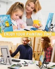 Acrylic Paint Canvas Set for Adults & Kids, 80PCS Art Painting Supplies Kit with 2*12 Colors Paint, 6 Canvas, 2 Table Easel, 2*10 Brushes, 2 Paper Pad, 2 Palette for Artist Beginner Students Complete Painting Supplies Kits: Each acrylic paint set includes everything you need to get painting, times two! 2 sets of 12 colors acrylic paint, 2 sets of 10 paint brushes, 6 painting canvas(4pcs 8"x10" canvas and 2pcs 8"x8" round canvas), 2 table easel, 2 plastic palette, 2 * 12 sheet A5 acrylic painting paper, 2 color wheel Acrylic Paint & Painting Brushes: 12 vibrant colors artist grade acrylic paint with buttery consistency for easy mixing and coloring (12 ml / 0.4 fl.oz). 10 different sizes paint brushes provide different functions, cover all your painting needs Painting Canva & Paper Pad: There are 6pcs blank paint canvas with 100% cotton canvas, 4pcs square and 2pcs round shape for different styles painting. 12 sheets of acrylic paper with thick texture for better painting results(140lbs / 300gsm) Multi-functional Table Easel: In this art painting kit, the steel wire table easel is lightweight and foldable, easy to carry. It can be used for table top painting, also display stand for painting, ipad or crafts Perfect Gift Choice: This canvas and paint set is designed for two individuals to create side by side, sharing the joy of painting with a friend or loved one! With beautiful packaging outside, the canvas painting kit is a great gift for artists, kids, students and painters of all levels