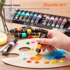 Product Description Artist Quality Acrylic Paint Convenience Tubes Each tube is filled with 12 ml of acrylic paint, making it easy to carry around for storage and giving good control over the amount of paint used during application. Artist Quality Paint These rich, vibrant pigments feature smooth, highly pigmented colors that blend easily to produce true, consistent shades. Ideal for Painting & Crafting Suitable for Kids and Beginners Our acrylic paints are suitable for all ages and skill levels. Whether painting or crafting, these tubes are the perfect introduction to the world of painting. Multipurpose Paint Our acrylic paints are suitable for most surfaces, including canvas, wood, rocks, fabric, ceramic, pumpkin painting, clay, craft and more. Acrylic Paint Guide About this item VIBRANT ACRYLIC PAINTS : Shuttle Art 30 Acrylic Paint Set consists of 30 vibrant assorted colors and with BONUS 3 FREE PAINT BRUSHES. Each tube is filled with 12 ml (0.4 oz) paints with rich pigments that are professional artist quality VERSATILE PAINTS : Paint lay down is creamy and vivid. Great for teens, beginners or artists for wide range of surfaces, such as canvas, ceramic, wood, fabric, clay, walls, nails, crafts and more. Children use acrylic paints in art class and leisure time to develop imagination skills and adults paint to relax and boost creativity, great for creating decorative art for your home DURABLE PAINTS : Acrylics dry very quickly. Paint stays on surface extremely well and is durable and long lasting. It’s permanent, waterproof and fade-proof HIGH QUALITY THICK PIGMENTS : When acrylic pigments are thin, artwork will appear watery and difficult to achieve vibrancy. We have developed a thick and rich pigment that provides superior coverage and maintain smoothness while painting. Conforms to ASTM-D4236, non-toxic and acid-free SERVICE GUARANTEE : Your satisfaction is our top priority, please rest assured to purchase our products. If you are not satisfied with our products or have any questions, please feel free to contact us at any time
