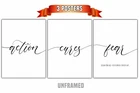 Action Cures Fear, Set of 3 Prints, Minimalist Office Quotes Art, Home Wall Decor, Typography Art, Wall Art, Multiple Sizes This listing is for unique UNFRAMED prints in the size of your choosing. This is the perfect gift or home decor poster print for the bedroom, over the bed, classroom, or a house warming gift. I use only the highest quality canon and HP heavyweight paper with a smooth finish. Made in the USA personally by me assuring quality. Please note this Item does NOT come framed. Thank you for stopping by my shop. ░▒▒▓ About this Listing: ▓▒▒░ - 3 High quality posters printed on Acid free high quality paper. Resolution: 300 dpi for the best quality printing. Size: 5x7", 8x10”, 11x14", 12x16" or 18x24 (Send us a message for larger and other custom sizes) All sizes are standard and easily framed. ╱╱╱╱╱╱╱╱TERMS OF USE ╱╱╱╱╱╱╱╱ - For Personal Use Only. - Colors on monitors may vary. - Frame is not included. Thanks for Visiting. Please check out our other items!