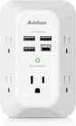 USB Wall Charger Surge Protector 5 Outlet Extender with 4 USB Charging Ports (1 USB C Outlet) 3 Sided 1800J Power Strip Multi Plug Outlets Wall Adapter Spaced for Home Travel Office ETL Listed Description Item model number AD5004 Style 1C3A Color white Product Dimensions 5.51 x 1.57 x 0.5 inches Country of Origin China Compatible Devices ac Connector Type USB Type C Item Weight 9.6 ounces Item Dimensions LxWxH 5.51 x 1.57 x 0.5 inches Brand Addtam Manufacturer Addtam Number of Outlets 5 Features USB Charger Plug Type United States USB Wall Charger Surge Protector 5 Outlet Extender with 4 USB Charging Ports (1 USB C Outlet) 3 Sided 1800J Power Strip Multi Plug Outlets Wall Adapter Spaced for Home Travel Office ETL Listed 【9 IN 1 Function USB Wall Outlet】- Fit duplex outlet perfectly, just plug in to use. Please NOTE: For some outlets, the white plastic prong can be cut off before using. You get 5 AC outlet splitter (3 sides) with wide space in between; 4 USB charger ports; 1800 joules surge protector protect electronics by improving your power quality 【USB- C Fast & Smart Charge】- 4 USB ports total 4.5 A, each USB A port features 2.4A Max output. USB C charging port features 3A MAX. Built- with smart technology, detecting charging devices and deliver optimal charging speed automatically, compatible with most USB devices. NOTE: The UCB-C port doesn't support any other devices which need 14~22V charging voltage 【1800J Surge Protector Outlet】- 3 complementary Surge Protection Circuits, TVS(transient voltage suppressor) MOV(metal oxide varistor) GDT(gas discharge tube), with response speed less than 1Ns, and minimum energy-absorbing capacity of 1800 Joules, much more quickly and reliably than the traditional MOV surge protector circuit. ("SURGE PROTECTED" indicator light on to show your devices are protected) 【Super Safety】- ETL Certificates. This power strip has overload protection, short-circuit protection, over current protection, over-voltage protection and overheating protection. It will automatically cut power to protect connected devices when voltage surge is overwhelming. Combined with fire-resistant casing- keeping you and your devices completely safe 【Wide Space】- With 3-sided Power Strip design, 5 AC outlets with long space in between, larger than a standard socket- Making it easier to use for all kinds of equipment and without blocking each other Product Description Smart 4-USB Charging Ports Smart 3 USB-A and 1 USB-C Charging Ports: 5V 4.5A shared rating; High-speed USB ports automatically detect charging devices and deliver optimal charging speed, up to 3.1A per port. it can charge 4 portable devices simultaneously. 5 AC Outlets The extended 5 outlets fit 5 standard plugs simultaneously. 3 sides with wide space in between. (125V/15A) Fast Smart USB Charging Ports High-speed USB ports automatically detect charging devices and deliver optimal charging speed, USB-C up to 3.1A per port, it can charge 4 portable devices simultaneously. 1800 Joules Surge Protection This power splitter comes with a surge protector which can absorb excess voltage to provide superior protection for desktop computers, mobile phones, and other electronics appliances from voltage fluctuations, surges, and spikes. Wall Mountable Designed Simple and secure installation. The integrate stabilizing post, makes wall mount outlets more secure and convenient. Please NOTE : For some outlet, the white plastic prong can be cut off before using Surge Protector LED Indicates Keeps Devices Safe from Surges and Spikes. When bad weather knocks out your home’s power or an unexpected surge or spike occurs, Addtam protector is your first line of defense. This safety-regulated, flat wall tap built-in LED light that indicates when your devices are protected and wiring properly grounded. Wide Space Wide space: 5 AC outlets built-in 1800 Joules surge protector with long space in between, larger than standard socket. Larger spacing makes it easier to use for all kinds of equipment. Perfect for Any Place This Mini Wall Outlet with 5 outlet & 4 USB ports can meet most applications, such as nightstand/home/office/travel. Number of Outlets 5 5 6 12 USB Charging Ports 3 USB A + 1 USB C 3 USB A + 1 USB C 2 USB A 2 USB A + 1 USB C Surge Protection(Joules) Yes (1800 J) Yes (1800 J) Yes (490J) Yes (490 J) Size / inches 3.5*5.4*1.7 in 3.5*5.4*1.7 in 3.5*5.3*0.9 in 3.5*6.0*1.5 in Special Feature 3 Side/ Wide Space 3 Side/ Wide Space Sensor Night Light 3 Side/Phone Holder