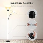 Eco-friendly E26 Floor Lamp; The 71" floor lamp adopt double E26 base, it will reduce the electricity bills to use the LED light bulb, saving energy and saving your money; Also, the acrylic plastic lampbase can keep a cool touch even after hours of use, so no worries about the overheating issue; Note: Bulbs Not Included Gooseneck Reading Lamp; BoostArea floor lamp comes with a Main Lamp and a Side Lamp, the adjustable gooseneck of the side lamp allows you to adjust the angles to illuminate your projects, like reading, working and daily use; By emitting warm white light, the Eye-caring LED floor lamp will not harm your eyes; Also, with the three options of the rotary switch, you can choose the Main Lamp On, Side Lamp On, or Both Lamp On according to different task needs Safe and Easy Assembly; We take safety seriously into consideration, with a stable base and metal pole, this lamp for bedroom tall provides good stability from falling, which is safe for your baby and pet; it can also be easily placed in the bedroom, living room, and other places according to your wishes; Simple and easy to assemble within 5 mins without extra tools, you just need to screw all the parts of the LED floor light working together by following the instruction video on the page Stylish Design; Thanks for the space-saving design, the home office standing lamp can fit easily in any corner of the bedroom, slide it behind a sofa or place it beside a cabinet, you can move it easily into various places in your home; Besides, its modern design makes it not only floor lamps for bedrooms, floor lamps for living room or office, but also a nice decoration for your home; The standing floor lamp fits well with urban, mid-century modern, casual, or contemporary decor Compatible with smart devices; You can plug this floor lamp in the smart plug (not included), or connect it to a wall switch (not included); Add the floor lamp to your home appliances group, and easily controlled it by your phone; Intelligent design help you enjoy easier life and home automation