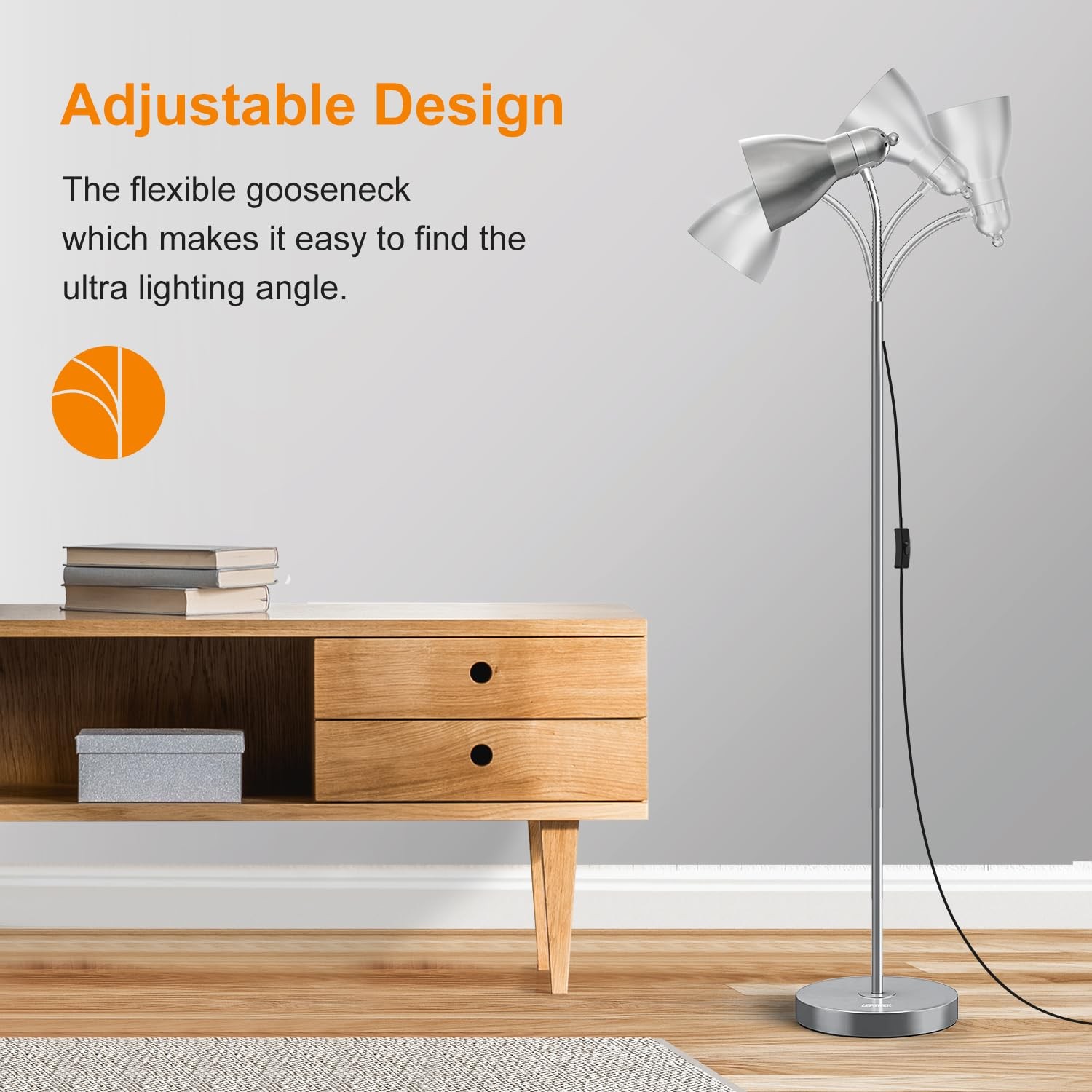 metal floor lamp is a part of 's continuing pursuit for creating highly efficient and convenient products for our customers. We produce enduring and energy saving lights with professional designers and decorators. It has a beautiful and classic shape design, which is not only a floor reading lamp, but also a modern decoration for your living room, bedroom and office. Well-Made Material: The adjustable floor lamp is integrated with a sturdy metal lampshade and base, which is enduring and classic. The standing lamp's heavy base makes it non-wobbly and safe to have children and pets around Adjustable Angle: The strong and handy gooseneck of the floor reading lamp can be adjusted flexibly, meeting your various lighting needs likes reading or sewing On/Off Switch: Conveniently located at the cord of the stand up lamp for quick and easy use Easy to Assemble: Only twist pole segments tightly, the standing light can be used in just a few minutes. As a modern floor lamp with an E26 base (40W Max), it can brighten up your bedroom, office, living room and dorm