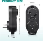 Thermostat Control: this non digital plugin thermostat comes with an adjustable temperature dial; Provide heat and cool 2 modes for you to choose, the thermostat will automatically turn on or off your heating or cooling equipment according to the target temperature you set, you can set the appropriate temperature (41-86 degrees Fahrenheit), maintain a stable room temperature for your greater comfort; Warm tips: please disconnect the power supply before switching the heat or cool mode Easy to Operate: plug and play design; No need to use other tools, just open the heat or cool mode button manually; Plug your heating or cooling device into the thermostat outlet, turn POWER switch to On and you're ready to go; Just set your ideal temperature, the scale is clear, even the elderly can simply operate it; The LED light let you easily see if it is on or off too Safe and Reliable: this 3 prong thermostat plug into a standard socket is ETL listed; Temperature control range is 41-86°F; Rated voltage is 125VAC 60Hz; Max Loading: 15A 1875W and has a recoverable overload short circuit; Dimensions: 5 x 2.5 x 2.5 inches; Do not immerse controller or probe into water Save Your Time: the thermostat will make your life comfortable; The adjustable thermostat turns on and off appliances connected to outlet based on the target temperature; It uses power only when necessary, brings convenience to your life Wide Usage: suitable for most portable space heaters, window air conditioners and circulating fans; Can also be applied for greenhouse, reptiles breeding, pet feeding, wine cellar, swamp cooler, evaporative cooler, electric fireplace heater, garage, RV and so on Product Description Specifications: Quantity: 1 piece Dimensions: 5 x 2.3 x 1.5 inches Input: 125VAC 60Hz Load (max): 125VAC@15A 1875W -- resistive load 1/2HP@125VAC, TV-5 -- inductive load Temperature control range: 41-86 °F Note: It cannot be controlled remotely, it is manually adjusted. Package includes: 1 x Plug in heating and cooling thermostat