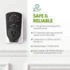 EASY TO OPERATE: Just plug in this adjustable thermostat, select heat / cool mode with the user-friendly switch and it will automatically turn on or off your heating or cooling devices through your preset target temperature. EFFORTLESS TEMPERATURE SETUP: This non-digital plugin thermostat comes with an adjustable temperature dial and the current temperature is displayed on the center for easy reference. Temperature control range is 41-86°F. SAVES YOU ON YOUR HOME ENERGY BILLS: You’re always a winner with this heating & cooling thermostat. It’s energy efficient while maintains a consistent ambient room temperature. VERSATILE USES: Suitable for most portable space heaters, air coolers, and circulating fans. Can also be used for refrigeration, fermentation, greenhouse fan and designed to suit almost any application you can imagine. SAFE & RELIABLE: This 3-Prong thermostat plug into a standard socket is ETL listed and rigorously tested for quality control and safety. Conforms to UL Std No. 60730-1, 60730-2-9. Voltage is 125VAC 60Hz, Max Loading: 15A 1875W and has a recoverable overload short circuit. Dimensions: 5” x 2.5” x 2.5”