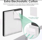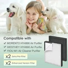 Air Purifier Replacement Filters by HSIAMEN, model HM-4866-2H4P, includes 2 HEPA and 4 carbon pre-filters. Compatible with MORENTO HY4866, YIOU M1, and WESTHEY HY4866 air purifiers. MERV rating of 13 for efficient filtration. Filter life of 6 months. Pleated type with pre-filter technology. White in color, measuring 11.85" L x 10.63" W x 2.83" Th. Weighs 2.57 pounds and does not require batteries.