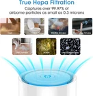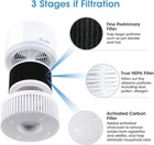 [TRUE HEPA AIR PURIFIER]: Filters out dust, pollen and pet dander. This air purifier filters particles as small as 0.3 microns and larger air pollution of PM 2.5, helping to improve overall health. Perfect for pet owners, babies, children, the elderly, or anyone wanting to improve the air quality in their home or hotel room. The perfect holiday, birthday, or housewarming gifting choice for parents, adult children, colleagues, and friends. [ENVIRONMENT-FRIENDLY AIR CLEANER]: Equipped with a 3-Stage Filtration system including Pre-filter, TRUE HEPA Filter, and Activated Carbon Filter can effectively remove odor and smoke, such as pet odor, cigarette smoke, and cooking odor around your living space and zero Ozone emission certified by California Air Resources Board. [EFFICIENT AIR PURIFICATION]: The 360-degree air intake and discharge maximize fresh and healthy air provided in all directions, improving the air circulation in your room. It can completely purify 50 cubic meters of air per hour in normal mode. [EASY OPERATE, SIMPLE DESIGN]: One single press of the big button to turn it on/off and control the fan speed. Long press to turn on/off the night light. The minimalist design makes it look elegant and sleek anywhere and fits any style of room decor. [WHISPER QUIET, ENERGY-SAVING]: At quiet mode, the noise is controlled under 35dB with the cutting-edge noise-reducing fan blade design. You will barely be able to hear it at arm's length. And it consumes only 0.192 units of electricity with a rated power of 8W.