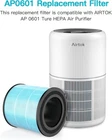 Air Purifier AP0601 Replacement Filters, 4-IN-1 High-efficiency HEPA Blue Product Details Brand Name: AIRTOK Model Info: AP0601 Item Weight: 12.3 ounces Product Dimensions: 6.3 x 10.24 x 6.3 inches Country of Origin: China Item model number: AP0601 Noise: 25 dB Part Number: AP0601 Color: Blue Compatible Device: Air Purifier Material Type: Nylon Included Components: Replacement Filters 2-Pack Batteries Included?: No Batteries Required?: No Brand: AIRTOK Material: Nylon Product Dimensions: 11.8"L x 5.8"W x 5.8"Th Compatible Devices: Air Purifier Item Weight: 0.35 Kilograms Number of Items: 2 Manufacturer: AIRTOK Unit Count: 1.0 Count AIRTOK Authentic Filters: Off-brand filters are inconsistent, unreliable, and may damage the air purifier. It is highly recommended to use this officially designated replacement filter to keep your AP0601 air purifier at its best working efficiency and capacity, breathing good quality air all the time. HEPA Filters attach 99.97% of particles as small as 0.3 microns ,such as household dust, Pet Dander, Plant Pollen, Smoke, Fibers and Pet Fur, Diaper Bins Odors, Teenager’s Room Smells, Wet Dog Odors, Cat Litter Odors. 4-IN-1 Filter Design : Include Nylon Pre-Filter, that can attach hair, lint, pet fur; HEPA Filter get rid of smoke particles. High-efficiency Activated carbon filter quickly absorbs odors to improve the air quality. Easy to Replace: Filters are sealed to protect their lifetime. Please remove the plastic packaging of the new filters before placing them into air purifier.. After installation, press and hold the filter replacement indicator to reset the change filter reminder. LONG TIME TO USE: Recommended to change filter once every 3-6 months. You may need to replace your filter earlier or later depending on how often you use your air purifier. Using your air purifier with relatively high pollution may mean you will need to replace the filter more often.