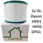 Air Purifier Filter Compatible with Dyson Desk Purifier HP01, HP02 & DP01 Models. Compare to Part # 968125-03. Product Details Brand: Casa Fresh Compatible Devices: Air Purifier UPC Manufacturer: Casa Fresh Unit Count: 1 Count Brand Name: Casa Fresh Item Weight: 15.6 ounces Package Dimensions: 9.06 x 9.06 x 6.97 inches Compatible Device: Air Purifier Batteries Included?: No Batteries Required?: No Date First Available: May 7, 2019 Compatible with Dyson Pure Hot+Coollink and Dyson Pure Coollink. Replacement Evo filter for your Dyson purifier. This filter is compatible with all HP01, HP02 and DP01 models. Compare to Part # 968125-03. Compatible with: first generation Dyson desk purifiers Dyson Pure Cool Link Desk. (part numbers: 305214-01, 308033-01, 308034-01, 309423-01, 308404-01) Compatible with: first generation purifying heaters Pure Hot + Cool Link (part numbers: 305571-01, 305570-01, 307058-01, 308396-01, 308395-01) You've Tried The Rest. Its Time To Make Your Casa Fresh !! Casa Fresh Air Purifier Filter Compatible with Dyson Desk Purifier. Compatible with Dyson Pure Hot+Coollink and Dyson Pure Coollink. Replacement Evo Filter for your Dyson purifier. This filter is compatible with all HP01, HP02 and DP01 models. Compare to Part 968125-03. Compatible with: first generation Dyson desk purifiers Dyson Pure Cool Link Desk. (part numbers: 305214-01, 308033-01, 308034-01, 309423-01, 308404-01) Compatible with: first generation purifying heaters Pure Hot + Cool Link (part numbers: 305571-01, 305570-01, 307058-01, 308396-01, 308395-01). Designed and Engineered by Casa Fresh in the USA !!