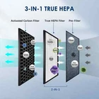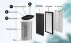 【3 Stage Filtration】 The high-quality 3-in-1 filtration system with high efficiency can effectively filter various pollutants. The pre-filter first filters large particles such as dust, hair, pet dander. The HEPA filter can filter 99.97% fine particles such as pollen, mites and PM2.5. The activated carbon filter absorbs pollutants such as smoke, cooking odor, formaldehyde and VOC. 【Ionizer】 This air purifier has an independent ionizer function, which emits negative ions into the filtered exhaust air when turned on to help the air purification process. 【Fresher Air】 With CADR (air purification rate) of 45 m³/h, AP-2202 filters a room of 5.4㎡ per hour. The higher the CADR value, the higher the cleaning efficiency of the air purifier. 【3 Fan Stages & Timer】 You can set a timer (1/2/4/8 hours) on the touch screen. Air purifier 3 kinds of speed settings (low, high and sleep mode) on the screen offer you different options. 【Compact Size】 The air purifier is compact and can be used for air purification every day, and you can easily bring it from bedroom to living room at any time 【Space-saving and silent operation】 Air purifiers are especially suitable for rooms from 3 to 5.4㎡. It offers you convenient air purification functions without taking up too much space. In a sleep mode, the fan is quietly lowered to create a quiet working and sleeping environment. 【Security and Trust】 We recommend replacing the replacement filter at least every 6-8 months. Specifications: Filter Type: HEPA,Activated Carbon Filter 3-stage filter system: HEPA, activated carbon and pre-filter Functions: Electronic Design 3 Wind speed 1/2/4/8 hours timer Ionizer purifying function CADR:45m³/h Room size: 3-5,4㎡ Noise Level:≤50dB Product dimensions:16.2W×28H×15.5D CM Material:Plastic Power:25 W Voltage :110 V /220V ∼ (AC), 50/60 Hz Package Includes: 1*Air Purifier 1*Air Filter 1*User manual