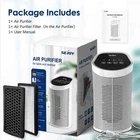 【3 Stage Filtration】 The high-quality 3-in-1 filtration system with high efficiency can effectively filter various pollutants. The pre-filter first filters large particles such as dust, hair, pet dander. The HEPA filter can filter 99.97% fine particles such as pollen, mites and PM2.5. The activated carbon filter absorbs pollutants such as smoke, cooking odor, formaldehyde and VOC. 【Ionizer】 This air purifier has an independent ionizer function, which emits negative ions into the filtered exhaust air when turned on to help the air purification process. 【Fresher Air】 With CADR (air purification rate) of 45 m³/h, AP-2202 filters a room of 5.4㎡ per hour. The higher the CADR value, the higher the cleaning efficiency of the air purifier. 【3 Fan Stages & Timer】 You can set a timer (1/2/4/8 hours) on the touch screen. Air purifier 3 kinds of speed settings (low, high and sleep mode) on the screen offer you different options. 【Compact Size】 The air purifier is compact and can be used for air purification every day, and you can easily bring it from bedroom to living room at any time 【Space-saving and silent operation】 Air purifiers are especially suitable for rooms from 3 to 5.4㎡. It offers you convenient air purification functions without taking up too much space. In a sleep mode, the fan is quietly lowered to create a quiet working and sleeping environment. 【Security and Trust】 We recommend replacing the replacement filter at least every 6-8 months. Specifications: Filter Type: HEPA,Activated Carbon Filter 3-stage filter system: HEPA, activated carbon and pre-filter Functions: Electronic Design 3 Wind speed 1/2/4/8 hours timer Ionizer purifying function CADR:45m³/h Room size: 3-5,4㎡ Noise Level:≤50dB Product dimensions:16.2W×28H×15.5D CM Material:Plastic Power:25 W Voltage :110 V /220V ∼ (AC), 50/60 Hz Package Includes: 1*Air Purifier 1*Air Filter 1*User manual