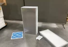 High Efficiency Particulate Air (HEPA) Filter: 99.99% efficient at 0.3µm particle diameter Room-Side Replaceable (RSR) design allows quick filter replacement from the inside of the cleanroom. Because it eliminates the need for roof access or breaching the cleanroom, an RSR model greatly reduces maintenance time and costs. Gel-sealed filter seats securely against a knife-edge on the fan housing Easy-open clips allow fast filter replacement from the room side without breaching the cleanroom ceiling Filter shipped uninstalled to prevent shifting in the mounting gel that could cause leaks. AC 3-speed blower motor FDA-approved silicone sealant Internal baffling plate and diffuser panel provide quiet uniform air flow across the filter face 1/4-20 UNC threaded inserts on corners to allow suspension by guy-wires MERV 7 pre-filter, 30% ASHRAE rated Low-profile design is ideal for cleanrooms with limited ceiling space Removable yellow power cord with 4-pin connector for easy installation to Terra cleanrooms (connector may be used with an optional wall plug adapter; or may be removed entirely to hard-wire the FFU) Filters are leak tested in accordance with IEST standards and meet UL 900 Fan Filter Unit; WhisperFlow, 2'x4', ULPA, 120 V, Powder-Coated Steel • Type: WhisperFlow • Material: Powder-Coated Steel • Filter Replacement Access: Top Side • Size: 2'x4' • Filter Frame Material: Aluminum • Filter: ULPA • Motor Type: Permanent Split capacitor (PSC) • Motor HP: 1/4 hp • Airflow: Positive Pressure