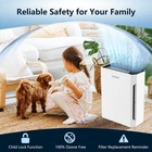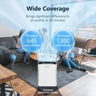 Color: White Material: PP Filter Type: HEPA Voltage: 120V Frequency: 60Hz Power: 56W Overall Dimension: 13" x 6.7" x 16" (L x W x H) Length of Power Cord: 5.2 ft Net Weight: 8.8 lbs Package Includes: 1 x Air Purifier 1 x Instruction Description: Enjoy fresh and clean air with our air purifier! Featuring high CADR of 118 CFM (200m³/h), our air purifier is ideal for large rooms such as living rooms and offices, which can clean rooms up to 645 sq.ft in 30 minutes, 1300 sq.ft in 60 minutes. Built in 3-stage purification technology with H13 HEPA filter, this air purifier is able to filters out 99.98% pollutants down to 0.3 microns, including dust, pet dander, allergens, smoke, odors and more. There are 2 operation modes (auto and sleep) and 4 wind speeds for you to choose. You can also set the timer to fit your life style. This air cleaner is designed with real-time air quality indicator which shows different colors according to PM2.5 levels. The filter replacement reminder will be activated after the total operation hours reaching 3000 hours. Note: we sell matched replacement filters. Features: Features a high CADR for efficient purification for large rooms Built in 3-stage purification system including H13 HEPA filter Filters out 99.98% of various pollutants down to 0.3 microns Equipped with 2 operation modes and 4 wind speeds Sleep mode and 2/4/6/8H timer ensure an undisturbed environment Reminds you to replace the filter after long time use Easy to use with LED touch control panel Built with real-time air quality indicator and PM2.5 sensor Provides reliable safety with child lock function Specifications: Color: White Material: PP Filter Type: HEPA Voltage: 120V Frequency: 60Hz Power: 56W Overall Dimension: 13" x 6.7" x 16" (L x W x H) Length of Power Cord: 5.2 ft Net Weight: 8.8 lbs Package Includes: 1 x Air Purifier 1 x Instruction