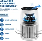 ☑️ HEPA AIR PURIFIER - Our 3 stage H13 True HEPA filter with Cleanfuse technology removes up to 99.98% airborne particles and has a 3,000 hour runtime, so you can enjoy quality living with your loved ones. ☑️ NEAR SILENT OPERATION - Need an undisturbed night of good sleep? Our Air Purifier operates more quietly and efficient(as low as 24 dB) than other air purifiers. ☑️ AIR QUALITY INDICATOR - The Built-in sensor can measures surrounding air quality and automatically adjusts the fan speed in real-time so you can spend more time with your family. Covers rooms as large as 250 ft2(23㎡). ☑️ CHILD/PET LOCK - The lock button protects your purifier from accidental setting changes from children or pets. This will help prevent accidental shutting off, changing of speeds, or unintentional operation. ☑️ IDEAL GIFT - Help your love ones relieve allergic symptoms such as sneezing, coughing, sinuses and heavy breathing. Ideal gift for the holiday season. Efficient and Quiet. Our premium air filter that runs efficiently without wasting electricity. The advanced fans and filtering system allow it to run quietly so you can enjoy yourself without the consistent humming coming from the fan. Child and pet safe. Built-in lock feature to prevent pets or children from tampering with the settings. Great to leave on for your children or pets when you are not home. It also helps reduce allergens from pet fur and makes air cleaner for your loved ones. Safe, reliable, long-lasting. Our top quality air filter was made to be extremely durable and long lasting. The 3 stage H13 hepa filter with Cleanfuse technology has a lifespan of 3,000 hours. Worry less about the small things and enjoy your home!