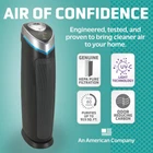 HEPA Filter Air Purifier: Equipped with a protective HEPA (High Efficiency Particulate Air) filter, this large room air purifier efficiently captures 99.97% of particles as small as 0.1 microns, trapping allergens like dust, pollen, and pet dander Clean, Fresh Air: A must-have air cleaner for homes, apartments, offices, and dorms, this zero-ozone-certified GermGuardian air purifier uses Ultraviolet - C (UV-C) tech to reduce airborne contaminants, so you can enjoy cleaner, fresher air indoors Home-Focused Filtration: An ideal air purifier for bedrooms and living spaces, this powerful home air purifier circulates and filters the air in small (189 sq. ft.) rooms 4.8x per hour and in large (915 sq. ft.) rooms every hour Reliable Room Deodorizer: Equipped with an activated carbon filter, this air purifier (HEPA) traps and absorbs volatile organic compounds along with dust, pet hair, and other large particles, effectively reducing odors from smoking, cooking, and pets Made & Independently Tested In The USA: Our units are among the best air purifiers for home use; Designed and engineered in the USA, they are ENERGY STAR CERTIFIED, CARB (California Air Resource Board) Certified, ETL Certified and Zero Ozone Verified Product Description Elevate your home's atmosphere with the GermGuardian home air purifier for bedrooms, kitchens, offices, and more – It helps filter odors and trap allergens. Immerse yourself in the tranquility of clean, allergen-free air as this powerful air purifier effortlessly captures and eliminates airborne particles. Equipped with a HEPA filter, a charcoal filter, and an optional UV-C light, this air purifier captures a remarkable 99.97% of dust, pollen, pet dander, and other allergens. Our testing proves it! With its space-saving design, this air purifier seamlessly fits into your space, ensuring your air stays crisp without intruding. Focus on making memories and revel in the joy of cozy family moments, never fearing the buildup of airborne particles or unwanted odors. Your at-home comfort can be customized with 3 speed settings, including an ultra-quiet mode on the lowest speed setting. This air purifier circulates the air 1x per hour in 915 square foot rooms and 4.8x per hour in 189 sq. ft. rooms, making it ideal for medium to large sized rooms such as: dorm rooms, bedrooms, and other living areas. Looking out for your family's well-being is no small feat. That's why we'll take the task of guarding your air to keep it clean and fresh. Let our meticulously engineered, rigorously tested and reliably proven products purify your home and shield your environment from the smoke in your air. We've fulfilled our commitment to you when you notice absence — the absence of allergens that prevent you and your family from living life to the fullest. Give your home a breath of fresh air with products designed and engineered in the US by Guardian Technologies. Brand Story By Germ Guardian