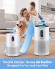 HIGH-PERFORMANCE AIR PURIFIERS FOR HOME LARGE ROOM: Enjoy fresh air in minutes with the 2024 new upgraded MOOKA B-D03 pet air purifier. With a brushless motor and 360-degree air inlet technology, it refreshes the air per hour in spaces up to 1500 sq ft, 4 x per hour in 375 sq ft. Modern design fits in any space from small to large rooms. Perfect for pet owners, babies, children, the elderly, or anyone wanting to improve the air quality PERSONALIZED AROMATHERAPY & NIGHT LIGHT: This air purifiers for home pets has a built-in aromatherapy function, enhance your indoor air with your favorite scent by adding 4-5 drops of essential oil to the top aromatherapy pad. and with the 360° cycle purification of the air purifier, the fragrance will spread throughout the room. But that's not all, our room air purifier also has a built-in night light, perfect for creating a cozy and relaxing atmosphere in your bedroom or living room MULTI-FUNCTION & QUIET OPERATION AIR PURIFIER: This air purifiers for bedroom has 4 adjustable fan speeds (S/L/M/H). and the sleep mode is very quiet with noise as low as 20dB. The timer option (2/4/6/8H) allows you to set the air purifier to run for a specific time, helping you save energy and money. The child lock function prevents babies or pets from accidentally touching the buttons, making your life more convenient and safer POWERFUL H13 TRUE HEPA AIR PURIFIER: MOOKA pet air purifier is equipped with 3-stage high-efficiency filtration system, effectively filters pet hair, dander, smoke, odor and large dust particles, in addition to removing all airborne contaminants as small as 0.3 microns FILTER REPLACEMENT REMINDER: This air purifier for dorm is equipped with a filter replacement reminder to ensure that you always enjoy the fresh air. When the HEPA air filter has been used for over 1440 hours, the filter indicator light will light up to remind you to replace the filter. Press the "Filter Reset" button for 3 seconds to reset it. We recommend buying official MOOKA filters to replace the filter for optimal purification. (Search for B0DDCSS24Y) AUTHORITATIVE CERTIFICATION: CARB, ETL, EPA, DOE, FCC and ETL certified (Available for California). No Ozone Release, No UV light, the best choice for home and pet air purifiers, always protecting the health of you, your family and pets IDEAL PRESENT: This H13 true HEPA air purifier is suitable for dorm room, bedroom, living room, apartment, office, nursery, basement and kitchen. Our B-D03 air purifiers for pets has a stylish and elegant design and efficient purification capabilities is a perfect present for housewarming parties, weddings, birthdays, Thanksgiving Day, Christmas EXCELLENT CUSTOMER SERVICE: Each MOOKA air purifiers for home has been rigorously tested by our company to ensure its quality and durability. We offer 2-year replacement, and lifetime customer service. If you have any questions, Please don't hesitate to reach out to us, and we will reply to you within 24 hours Product Description About 1,000,000+ families and 38,000,000+ peoples suffering adverse reactions such as coughing, sneezing, and difficulty breathing. Mooka air purifier's H13 True HEPA filter removes 99.97% of airborne particles as small as 0.3 microns, including dust, pollen, pet dander, smoke, VOCs,Odor. 1 High Efficiency 2 Aromatherapy 3 Energy Saving 4 Official Certifications 5 All In One Enjoy fresh, clean air at home with the quiet MOOKA B-D03 air purifier. Choose Mooka HEPA air purifiers for home, Choose what you breathe in every day. Mooka air purifier for bedroom has been certified by California Air Resources Board and is available for California residents. 1 Living Room 2 Bedroom 3 Baby Room 4 Kitchen 5 Office MOOKA Air Purifiers are Ideal for Your Family. Let Your Family Breathe Easily!