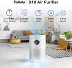 [ High Efficient Air Purifier] Tailulu D10 air purifiers for home pets uses a true H13 HEPA filter and 360° air inlets, which could effectively filter different kinds of air pollutants and create a fresher and cleaner environment. This air purifier for home covers an area of up to 1360 ft² . Perfect choice for those who want to improve indoor air quality. [Powerful 3-Stage Filtration] Tailulu D10 air purifiers for home large room features 3 stage filtration system, including pre-filter, H13 true HEPA filter and activated carbon filter, which could filter 99.97% particles as small as 0.3 microns such as pet dander, pet hair, smoke, cooking smell, odor, dust, pollen and VOCs. This hepa air purifier could be widely used from small to large rooms, bedrooms, living rooms, offices, children room, kitchens, apartment and basements. [User Friendly] Designed with smart touch panel, Tailulu D10 air purifiers for home pets is easy to use with functions like 4 fan speed, sleep mode, child lock, timer, filter replacement reset light, aromatherapy sponge and Optional ON/OFF night light. You could set a timer (2H/4H/6H/8H) for cooking, working, sleeping as you need so that you won’t forget to turn it off to cause unnecessary waste. [Low Noise & Energy Saving] Tailulu air purifiers for bedroom could work quietly with a lowest noise level of 15db and will not disturb your sweet dream, also friendly for light sleepers. Long press the child lock button for 3s to lock or unlock the touch panel to avoid error operation by kids or pets. [Safety Certified] Our home air purifier has been approved and certified by ETL and CARB (Available for California). 100% ozone-free and never use UV-C light, will not cause secondary pollution to ozone. [Filter Replacement] Tailulu large room air purifier features a reset light for filter replacement reminder. We recommend that you could replace the filter every 3-6 months for the health of you and your family. Please Search B0CXHG55H2 to find the genuine Tailulu D10 replacement filter to maintain the best performance. [Certified Quality & Support] Rest assured with ETL/FCC/EPA/CARB certifications. Tailulu offers 30-day money-back, 2 year lifetime tech support. If you have any questions, please do not hesitate to tell us.We solve the problem within 24 hours. Product Description Ultra Quiet At Night Tailulu air purifier runs at only 15dB, you could enjoy a good night sleep. 1 • Sleep Mode 2 • 4 Timer Setting 3 • Child Lock 4 • 4 Fan Speed Get to Know More About Our Products Add to Cart Add to Cart Add to Cart Add to Cart Add to Cart Customer Reviews 4.4 out of 5 stars 392 4.7 out of 5 stars 76 4.4 out of 5 stars 14 4.4 out of 5 stars 392 4.5 out of 5 stars 1,165 4.3 out of 5 stars 384 Price $99.99 $ 99 . 99 $129.99 $ 129 . 99 $29.99 $ 29 . 99 $39.99 $ 39 . 99 $99.98 $ 99 . 98 $70.71 $ 70 . 71 Coverage Area 1360 square feet 1800 square feet 1360 square feet 1360 square feet 1500 square feet 1740 square feet Model D10 HQKJ-180 D10 Air Filter D10 Air Filter D09 HQZZ-260 Item Dimensions 7.7 x 7.69x 12 inches 11.8x 6.7 x 15.4 inches 6.29 x 5.7 x 5.7 inches 5.7 x 5.7 x 6.29 inches 7.9 x 7.9 x 15.7 inches 7.6 x 13.3 x 17.5 inches Weight 3.6 Pounds 7.7 Pounds 0.46 Pounds 0.66 Pounds 4.1 Pounds 7.34 Pounds Application Home/ Office Home/ Office Home/ Office Home/ Office Home/ Office Home/ Office Filter Lifespan 3-6 months 3-6 months 3-6 months 3-6 months 3-6 months 3-6 months
