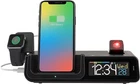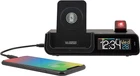 5 Watt Wireless charging cradle with indicator and smart watch holder; Universal compatibility for Qi-enabled phones (charges horizontal or vertical); Also, included 1 AMP USB charging port (external charge cable not included) with magnetic cable cord organizer for neatness & simplicity Dynamic Color LCD with manual 12/24 hour time and crescendo alarm; Displays calendar: weekday/date; AM/PM with seconds; indoor temperature (F/C) and humidity (%RH) Adjustable projection intensity (HI/LO/OFF) with rotation wheel for proper viewing angle; Projection display: Time Only, or Outdoor temperature/humidity only (if applicable), or alternate between both options Backlight intensity (HI/MED/LO/OFF) with Programmable Auto-Dim feature Includes 5. 0V AC adapter power cord to operate (no batteries required – internal memory holds settings up to 6 minutes if clock loses power) Power Source Type: Corded Electric