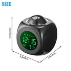 Product Description Product Feature ⏰ 90°Time Projection : under battery mode, press the top key to tell the time, the backlight and the projection for about 5 seconds. (when it connects to external power, the backlight and projection will be on at all times.) The projecting lens head can be rotated front and back for 90 degrees. ⏰ Voice Broadcast & 12/24 Hours : Featured with voice broadcast function, when you press the top button, you will hear an accurate time broadcast, great for elderly and disabled users. Besides, you can switch the time display mode to 12 or 24 hours according to your preference. ⏰ Dual Chime Function : With a dual chime function, you can select a voice broadcasting mode you like: chime 1 is to broadcast time every hour in a whole day, while chime 2 is to broadcast time from 7 am to 9 pm every hour. You can also turn off the automatic time broadcast manually. ⏰ 10 Minutes Snooze : The 10 minutes snooze function allows you to get 10 minutes extra snoozing time after the alarm ringing, giving your morning some relaxing time but still making sure you get up on time. And you can choose one alarm sound from multi sounds. ⏰ Temperature Display & Power : Comes with a temperature display function, you can know the exact temperature at the time whenever you check the time, and you can change the display mode to °C or °F according to your user habits. The clock is powered by 3 x AAA batteries (not included)or a USB Cable. Product Specification Type LCD Alarm Clock Material ABS Plastic Battery Type 3 x AAA Batteries (Not Included) Color Black Size 8 x 8 x 10cm / 3.93 x 3.15 x 3.15in Weight 156.8g / 0.35 lbs Package Size 9 x 9.5 x 10cm / 3.54 x 3.74 x 3.93in Package Weight 208.3g /0.46 lbs Package Included 💟1 x LCD Projection Alarm Clock 💟1 x USB Cable 💟1 x User Manual About Us Payment Shipping Contact Us We accept all verified payments from ebay. Orders will be shipped after receiving cleared payment. Payment due within 7 days after auction ends and for buy it now listings.