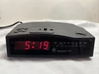 This GE 7-4813B digital clock radio is a great addition to any bedroom. With its sleek black plastic frame and digital display, it will blend in seamlessly with any decor. This clock radio is electrical and has a quartz movement for accurate timekeeping. It features AM/FM radio, battery backup, and an alarm, making it perfect for adults who need to be up early. The clock is 2 1/2" in height and has a 1/2" shape. The Arabic numerals are easy to read, and the clock is digital, making it easy to set and keep accurate time. This clock radio is an original and was made in China. Item sold as pictured.